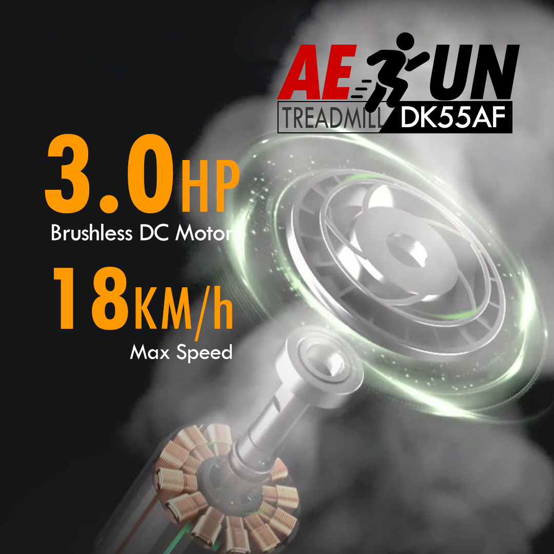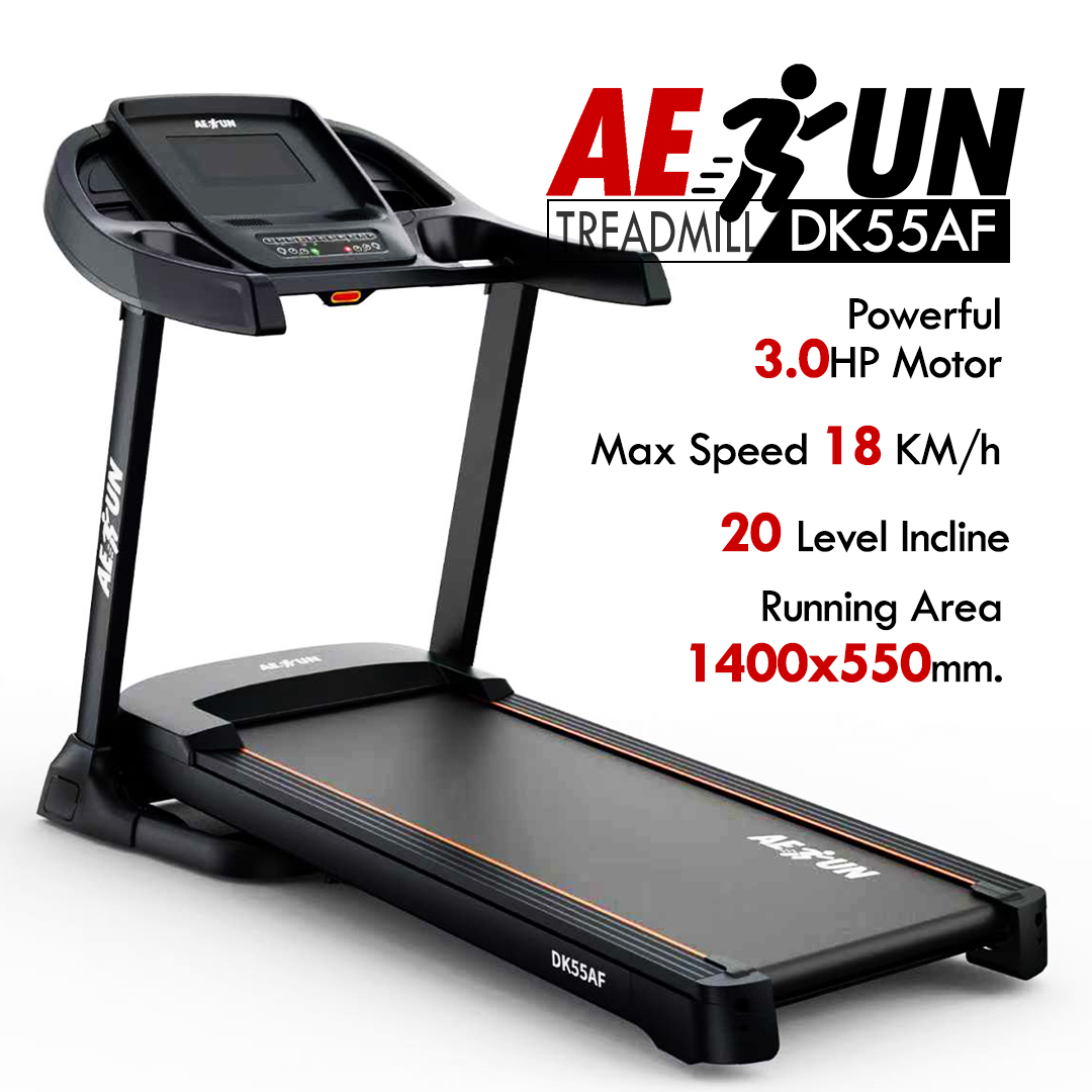 ลู่วิ่งไฟฟ้า AERUN รุ่น DK55AF มาพร้อมมอเตอร์ DC กำลังสูง 3.0 แรงม้า ให้การทำงานที่เงียบ ทนทาน และต่อเนื่อง เหมาะสำหรับการใช้งานในบ้านหรือฟิตเนสส่วนตัว ด้วยพื้นที่วิ่งขนาดใหญ่ 1400 × 550 มม. รองรับการวิ่งได้อย่างมั่นคงและปลอดภัย