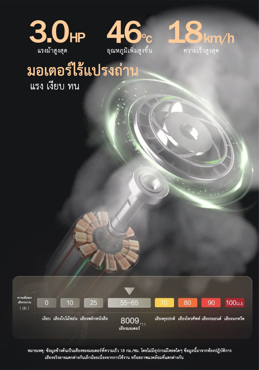 | มอเตอร์ (Motor) | DC 3.0HP เสียงเงียบ ทนทาน |