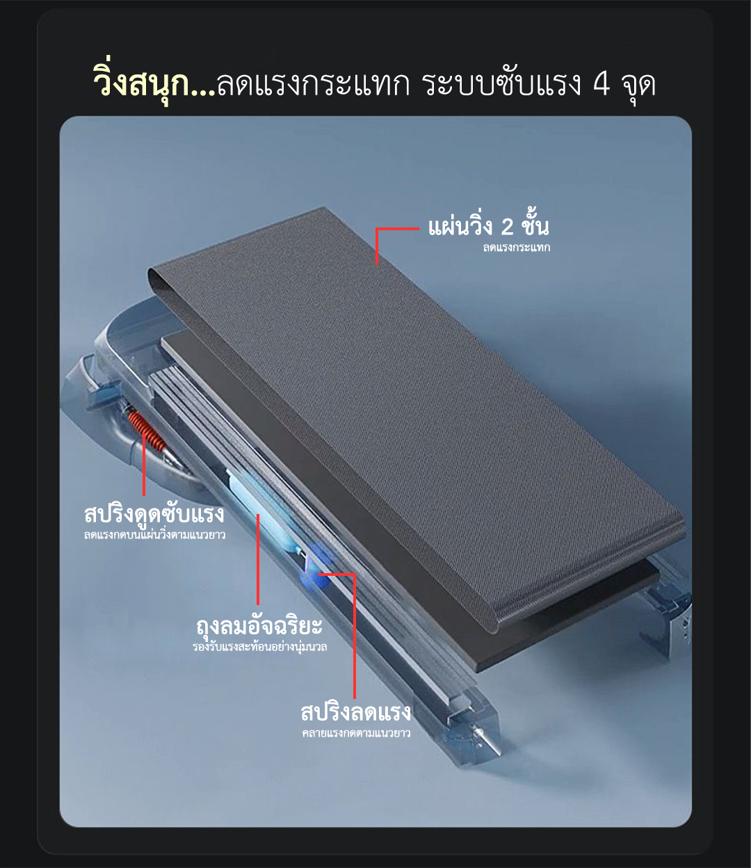 | หน้าจอแสดงผล (LCD Screen) | 7 นิ้ว แสดงเวลา, ความเร็ว, ระยะทาง, ชีพจร, แคลอรี่, โปรแกรม |