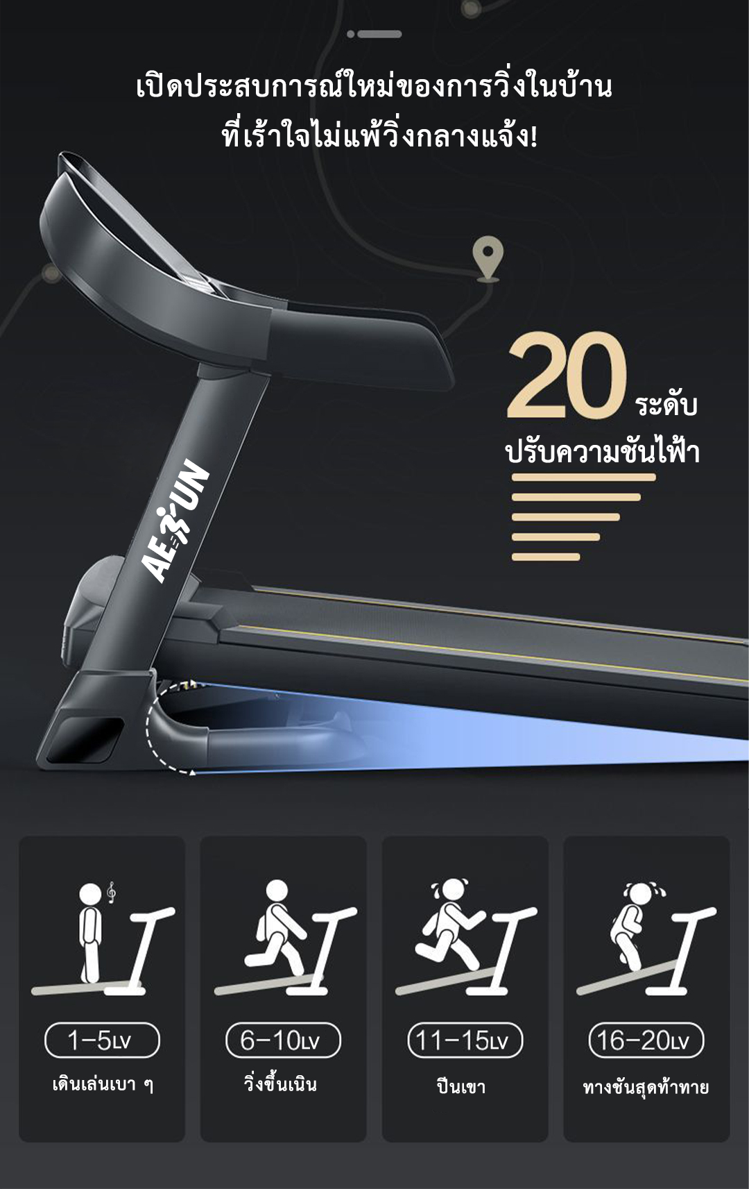 ปรับความชันไฟฟ้า 0–20% เพิ่มความเข้มข้นในการออกกำลังกาย