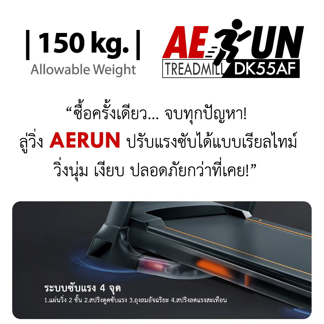 ลู่วิ่งไฟฟ้า AERUN รุ่น DK55AF มาพร้อมมอเตอร์ DC กำลังสูง 3.0 แรงม้า ให้การทำงานที่เงียบ ทนทาน และต่อเนื่อง เหมาะสำหรับการใช้งานในบ้านหรือฟิตเนสส่วนตัว ด้วยพื้นที่วิ่งขนาดใหญ่ 1400 × 550 มม. รองรับการวิ่งได้อย่างมั่นคงและปลอดภัย